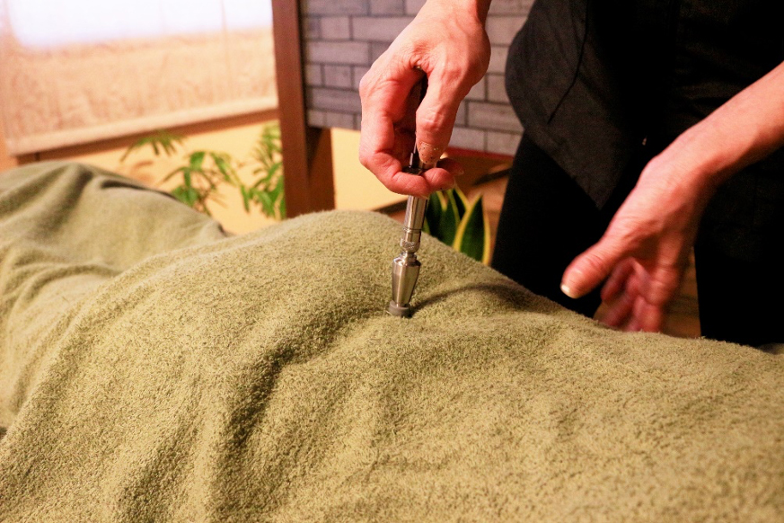 鎌ヶ谷の整体k-four (ケーフォー) では、それぞれのお体の歪みの状態に合わせ、ストレッチやアクティベーターの刺激で痛みの少ない施術をいたします。骨をボキッとするようなことはないのでご安心ください。